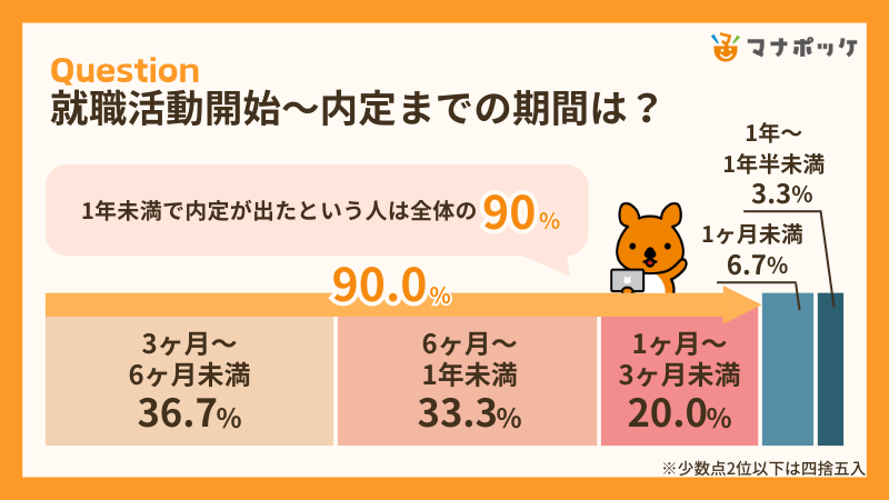 1年未満で内定が出たという人は全体の約9割に上ることが明らかになりました。
