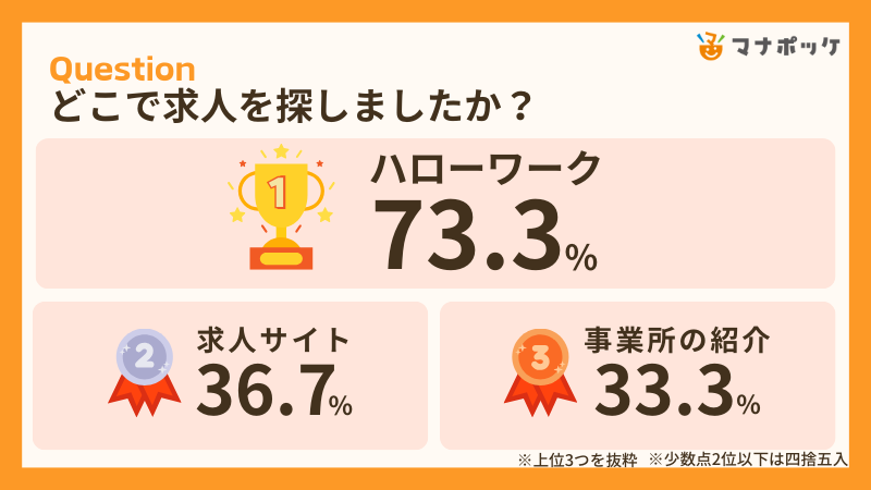 そして次に「求人サイト」、「事業所の紹介」の順で求人を探していた人が多かったです。