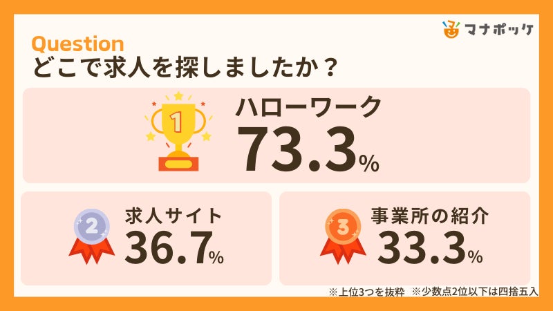 全体の7割以上がハローワークを利⽤して求人検索をしていたことが分かりました。
