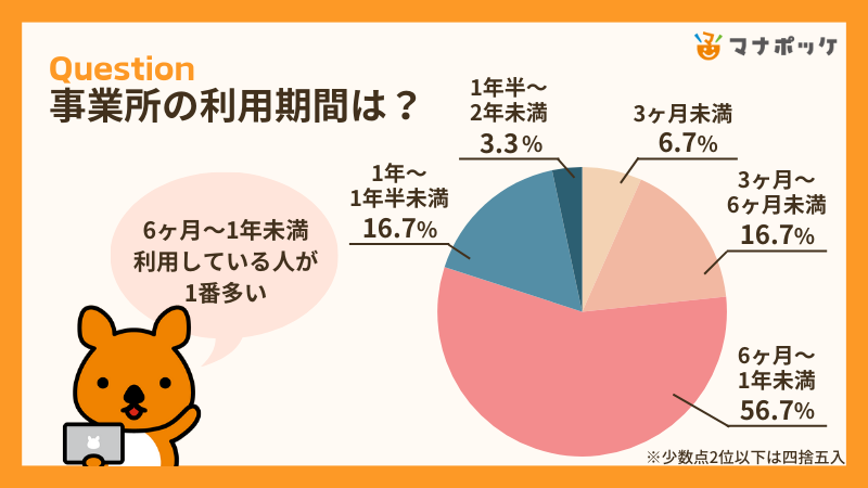 「6ヶ月~1年未満」で事業所を利用した人が1番多い