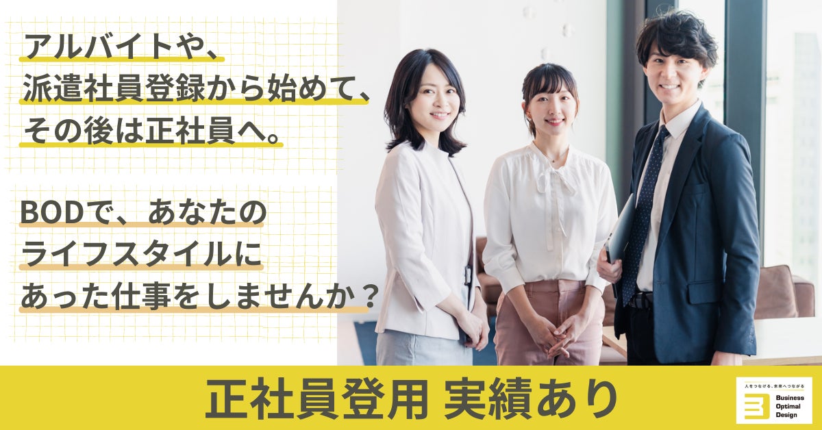 派遣先での期間が終了しても、ご希望があればBODの本社でのお仕事をお任せするか、他の派遣先(次のお仕事)のご紹介も行っております。