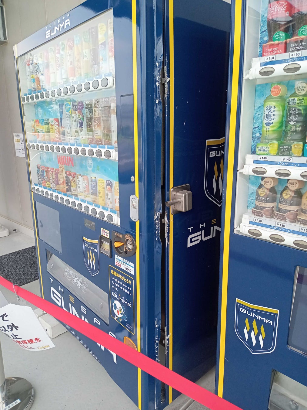 このたび、株式会社ザスパのクラブハウス「GCCザスパーク」の敷地内(屋外)に設置されている飲料用自動販売機2機が、8月5日(月)未明に損壊され、売上金の盗難被害に遭いましたことをお知らせいたします。