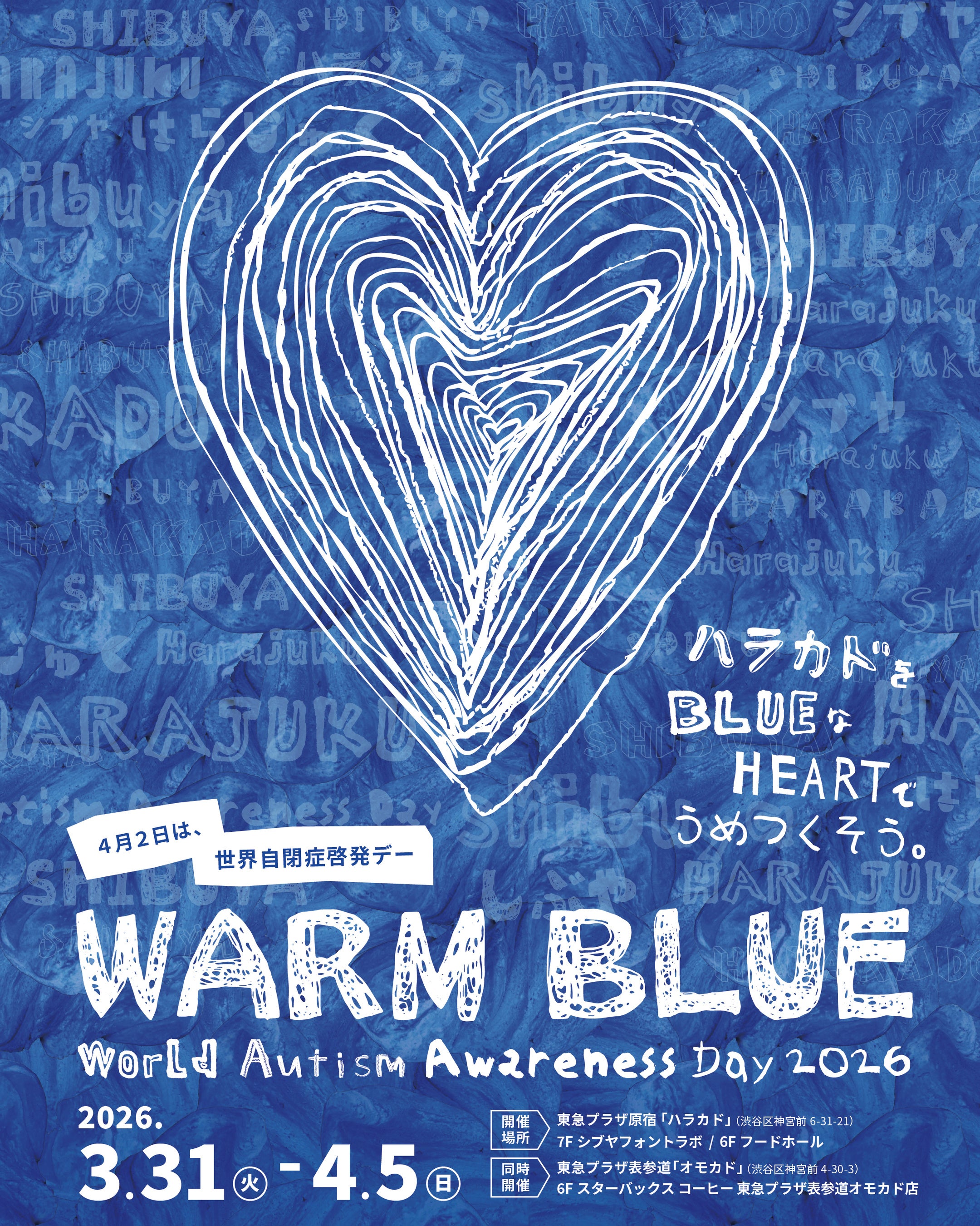 一般社団法人シブヤフォント(共同代表:古戸勉、磯村歩)は、4月2日「世界自閉症啓発デー」にあわせて、2026年3月31日(火)から4月5日(日)の期間中「WARM BLUE World Autism Awareness Day 2026」(以下、WARM BLUE)を開催します。