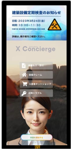 サイネージからQRコードを読み取り「X Concierge」を通して対話を開始すると、設備の不具合などを問い合わせることができます。入居者は管理員が不在の時間帯も安心です。