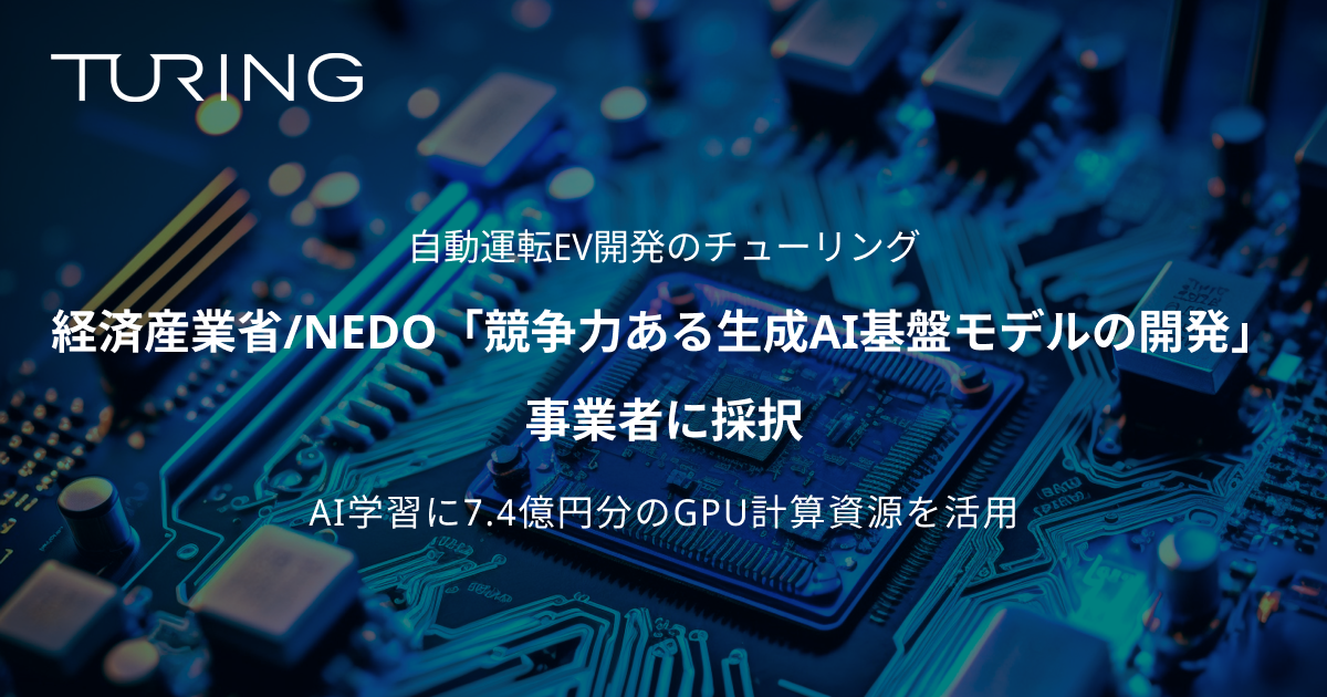 自動運転EV開発のチューリング、経済産業省/NEDO「競争力ある生成AI基盤モデルの開発」の事業者に採択