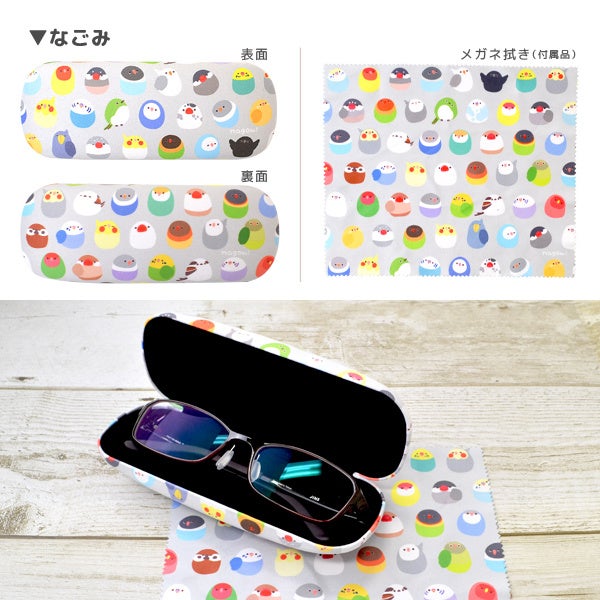お揃いの眼鏡拭き(マイクロファイバークロス)がついた小鳥さん柄のメガネケースが登場