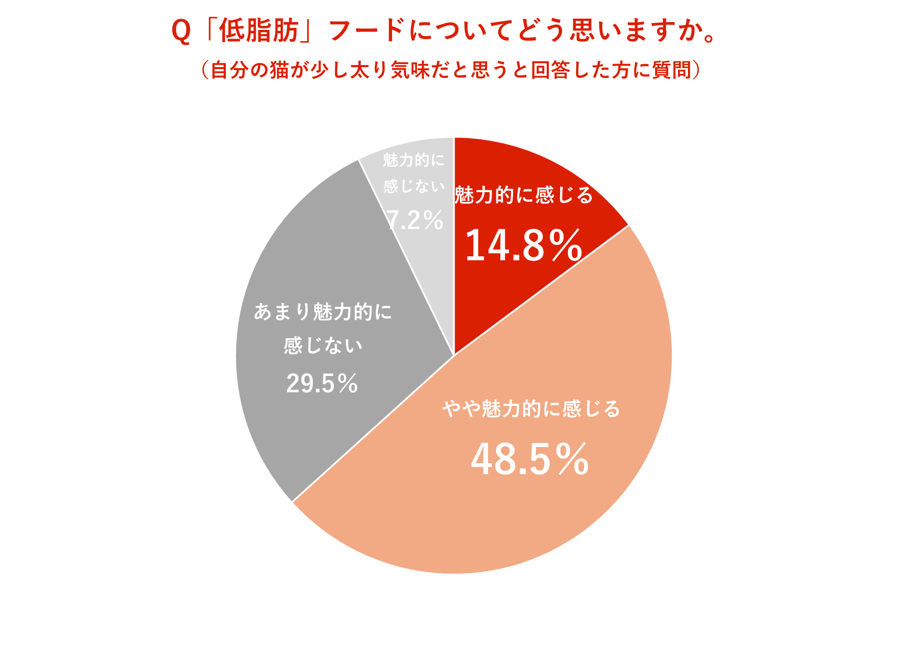 特に、「少し太り気味」だと感じている飼い主のうち、63.3%が「低脂肪」フードに対して「魅力的」「やや魅力的」とポジティブな回答をしたことから、「低脂肪」フードが太り気味な猫に関心があると感じている人が多いことがわかります【図10】 。体型や健康維持を意識してフードを選ぶ傾向が見られ、“猫中心ライフ=食と健康に投資する暮らし” であることが浮き彫りになりました。
