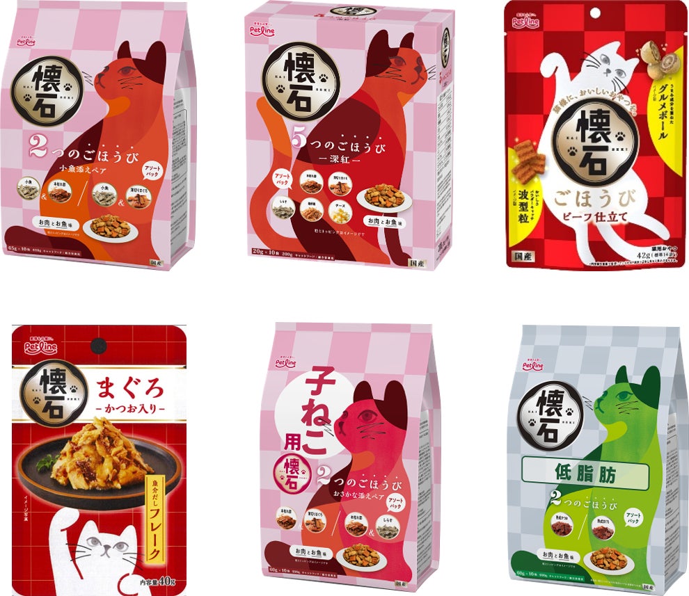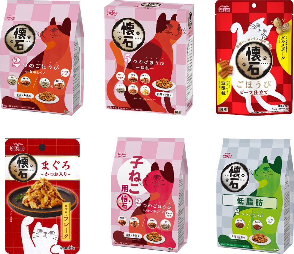 「懐石」は、2001年の発売以来、長年にわたり多くのお客様にご愛顧いただいております。お客様の声に耳を傾け、自社研究開発センターにておいしさと機能性を追求し続けてきた「懐石」は、さらに進化し、2024年秋にリブランドしました。猫と飼い主の皆様の大切な時間をより豊かにする、新しい「懐石」をお届けいたします。こだわりぬいた美味しさをぜひ、あなたの猫様にも。