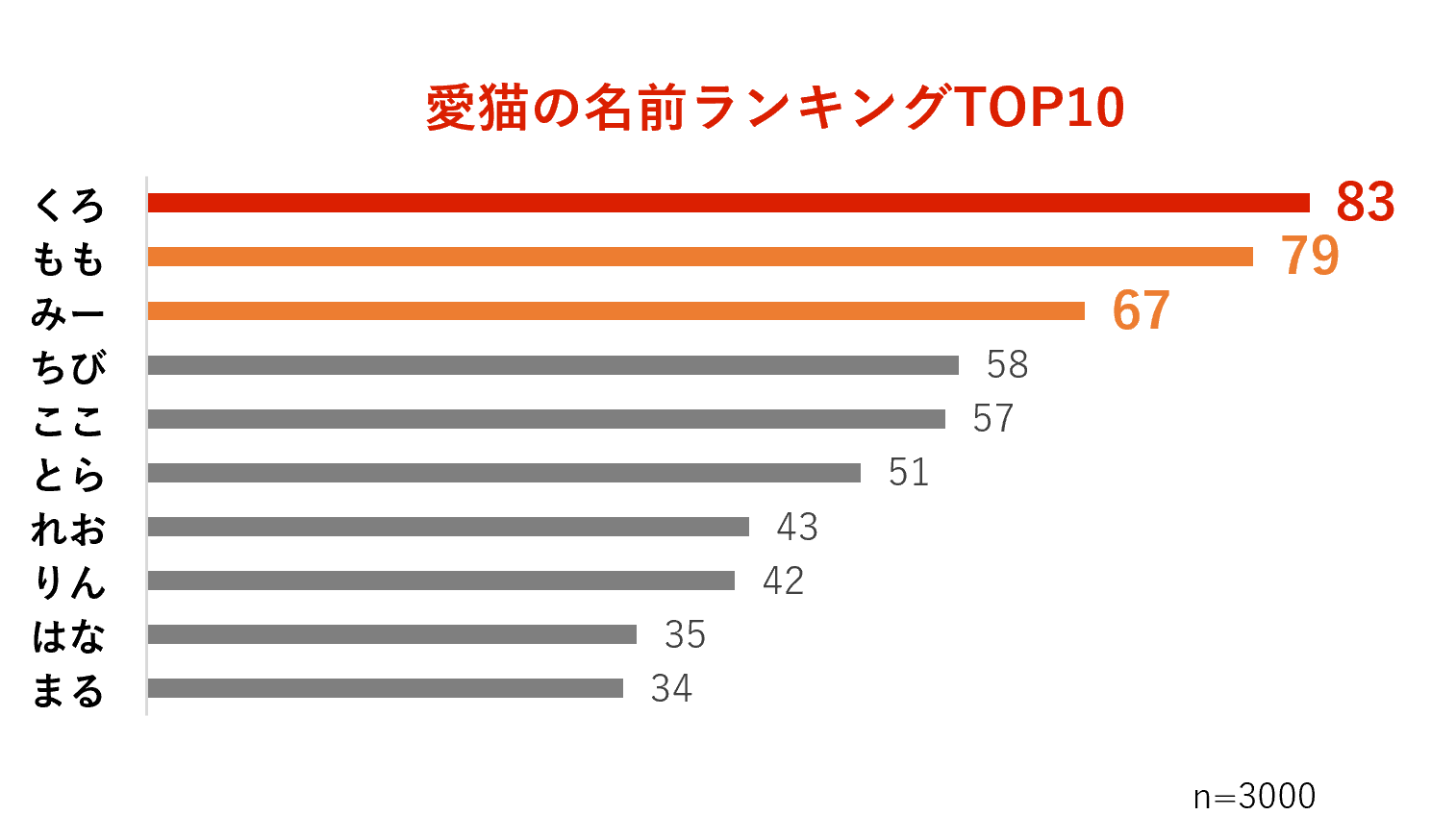 ■ 3000人に聞いた「愛猫の名前※¹ランキング」TOP10を発表! 愛猫の名前は2文字が多い傾向に。一番多かったのは、毛色にちなんだ「○○」!