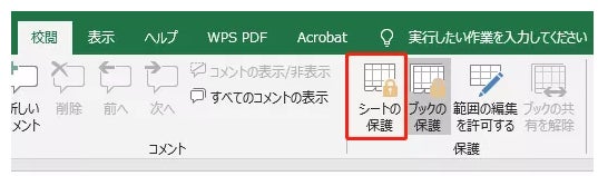 次は「シートの保護」ボタンからシート保護をかけることも可能です。