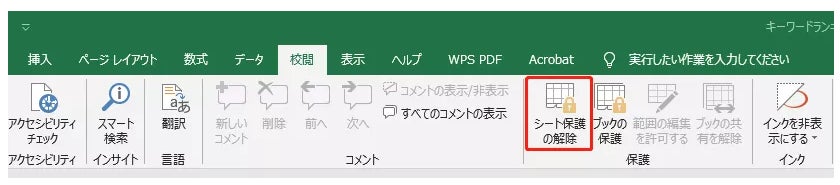 Step2:「シート保護の解除」をクリックします。