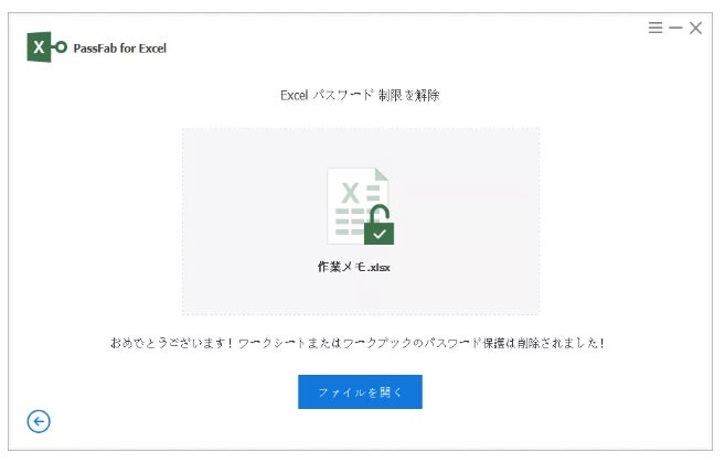 Step5:「ファイルを開く」をクリックすると、保護が解除されたExcelファイルを確認できます。