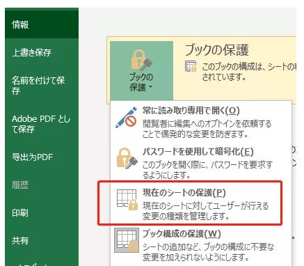 Step2:「現在のシートの保護」をクリックしてパスワードを設定します。
