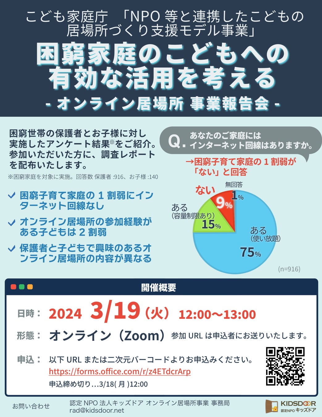 認定NPO法人キッズドア 「オンライン居場所」事業報告会の参加者を募集
