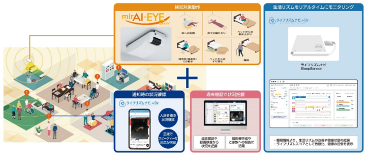 転倒検知による転倒事故の早期発見や、転倒に至るまでの行動データに基づく適切なアセスメントによる転倒予防、更には睡眠データに基づく体調変化の早期発見への寄与、適切なケアプラン構築やスタッフ業務の負担軽減の実現が期待されています。