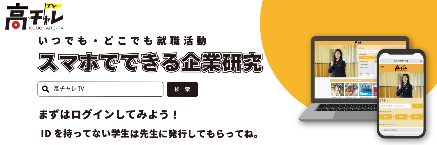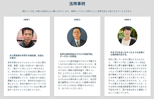 学校に届いている求人票はもちろんのこと、『高チャレTV』と連携している各企業様の求人票も種類が豊富で、今まで生徒が興味があってもなかなか紹介ができなかったような業界や規模の企業様の求人に生徒が簡単にアクセスできるようになったことは非常に重要なことだと感じています。