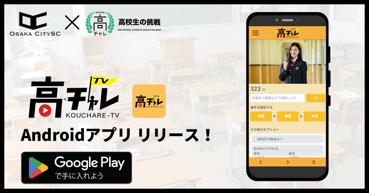 OsakaCitySCのメインスポンサーである株式会社COFFISOが、高校生の就職活動をサポートする「高チャレTV」のAndroidアプリを公開、高校生の就職活動支援を強化!!