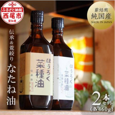 ⑧ 薪焙煎 純国産菜種100%ほうろく菜種油伝承油1本 ほうろく菜種油荒搾り油1本 H003-20(寄附金額20,000円)