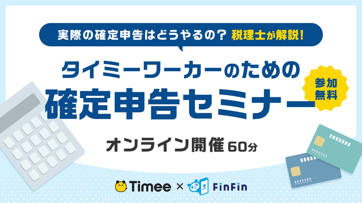 会計バンク株式会社(東京都千代田区大手町、代表取締役社長:反町 秀樹、以下「会計バンク」)は、2024年11月14日(木)に株式会社タイミーと業務提携契約を締結いたしました。それに伴い、安心してスポットワークに取り組める環境づくりや啓発活動の第一弾として、12月17日(火)と12月19日(木)より、「タイミーワーカーのための確定申告セミナー」を開催いたします。