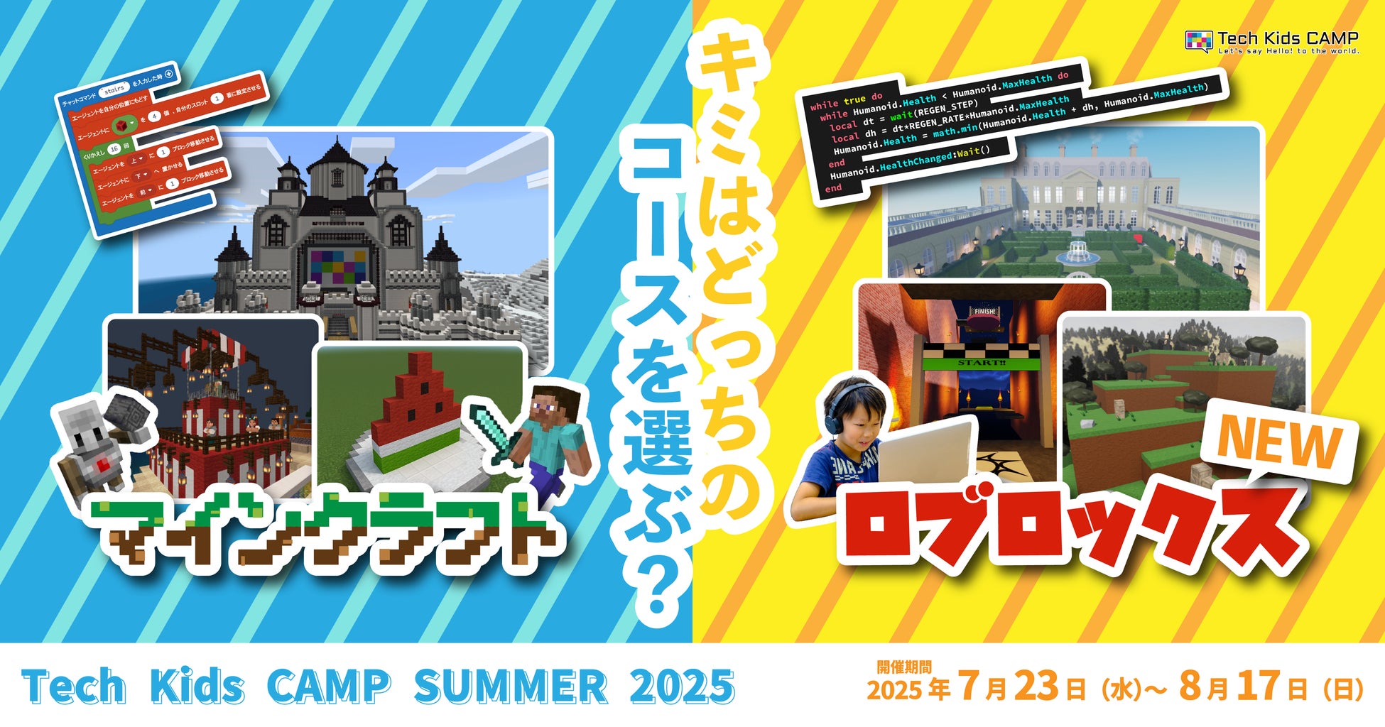この度開催する「Tech Kids CAMP Summer 2025」では、これまでのTech Kids CAMPで実施してきた教育版マインクラフト「Minecraft Education」(※1)を用いたマインクラフトコースに加えて、ロブロックスコースを新設いたします。