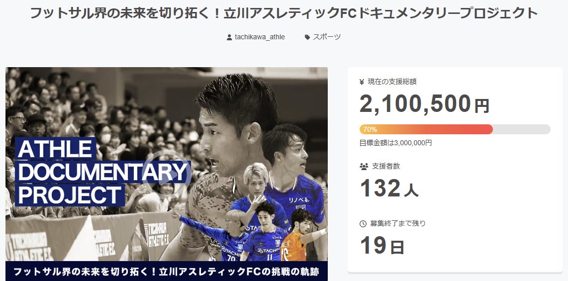 Fリーグに所属する立川アスレティックFCは「アスレドキュメンタリープロジェクト」を立ち上げました。
