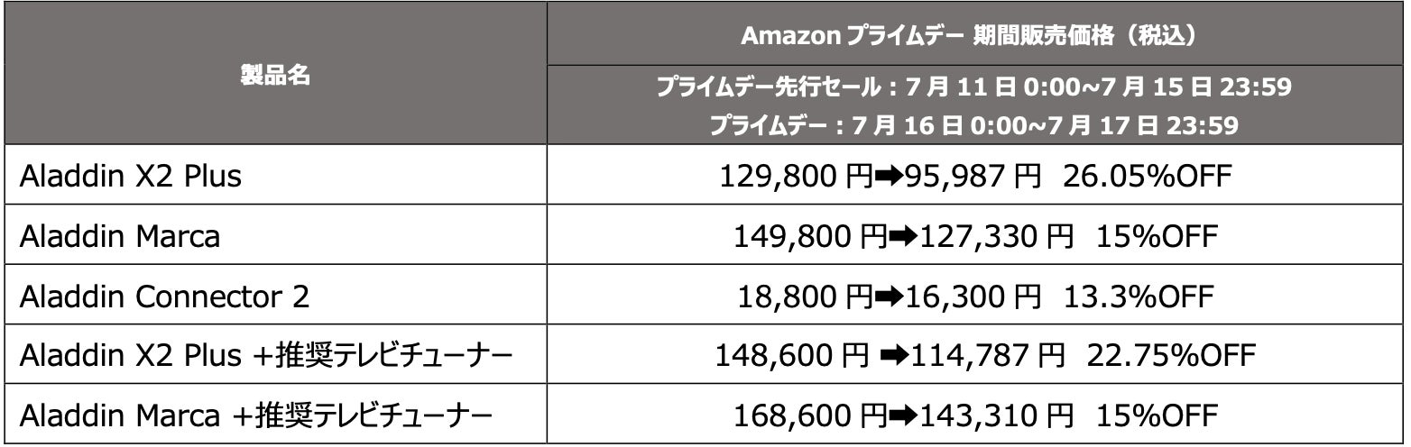 Aladdin X株式会社は、2024年7月16日(火)0:00~7月17日(水)23: 59にわたり、 Amazonで開催される「プライムデー」にて対象製品最大約26%OFFとなるセールを実施します。さらに、7月11日(木)00:00から「プライムデー先行セール」も実施します。
