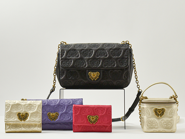 バタフライの刺繡とブローチが目を引くチェイスシリーズ。