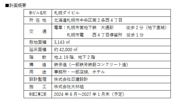 「札幌ダイビル再開発プロジェクト」新築工事着工のお知らせ