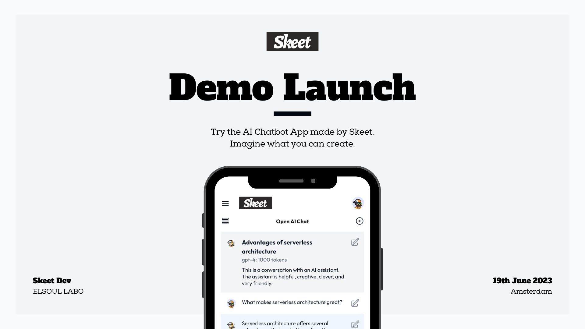 ELSOUL LABO B.V. (エルソウルラボ, 本社: オランダ・アムステルダム)は 19 日、Firebase 上にゼロメンテナンスのサーバーレスアプリを構築するオープンソースライブラリである"Skeet"で作成したデモ AI チャットアプリのローンチを発表しました。