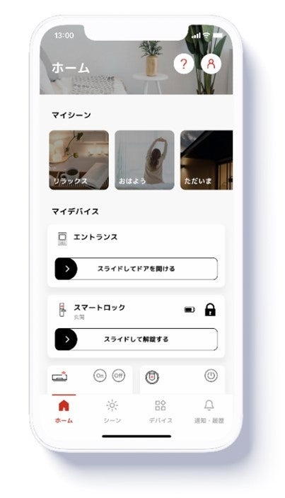 ・「おはよう」「行ってきます」といった「シーン」機能や、時間や位置情報などを実行条件とする「自動モード」の活用で、複数のIoT機器をまとめて動かし、設定どおりの住空間の制御が可能