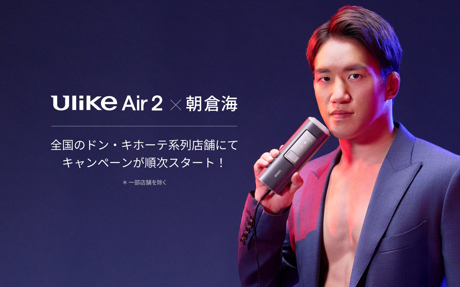家庭用美容機器メーカー「ユーライクジャパン株式会社」(本社:東京都港区)が展開する、世界NO.1(*1)光美容器ブランド「Ulike(ユーライク)」は、2025年5月1日(木)より、総合格闘家・朝倉海選手をイメージモデルに起用したメンズ用光美容器「Ulike Air 2 IPL光美容器」の期間限定キャンペーンを、全国のドン・キホーテ系列店舗(一部店舗を除く)にて順次開始いたします。