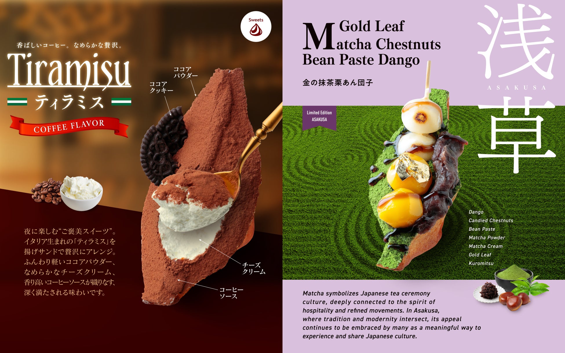 浅草店では、香り高い抹茶を使った3品と、ティラミスサンドをご用意。