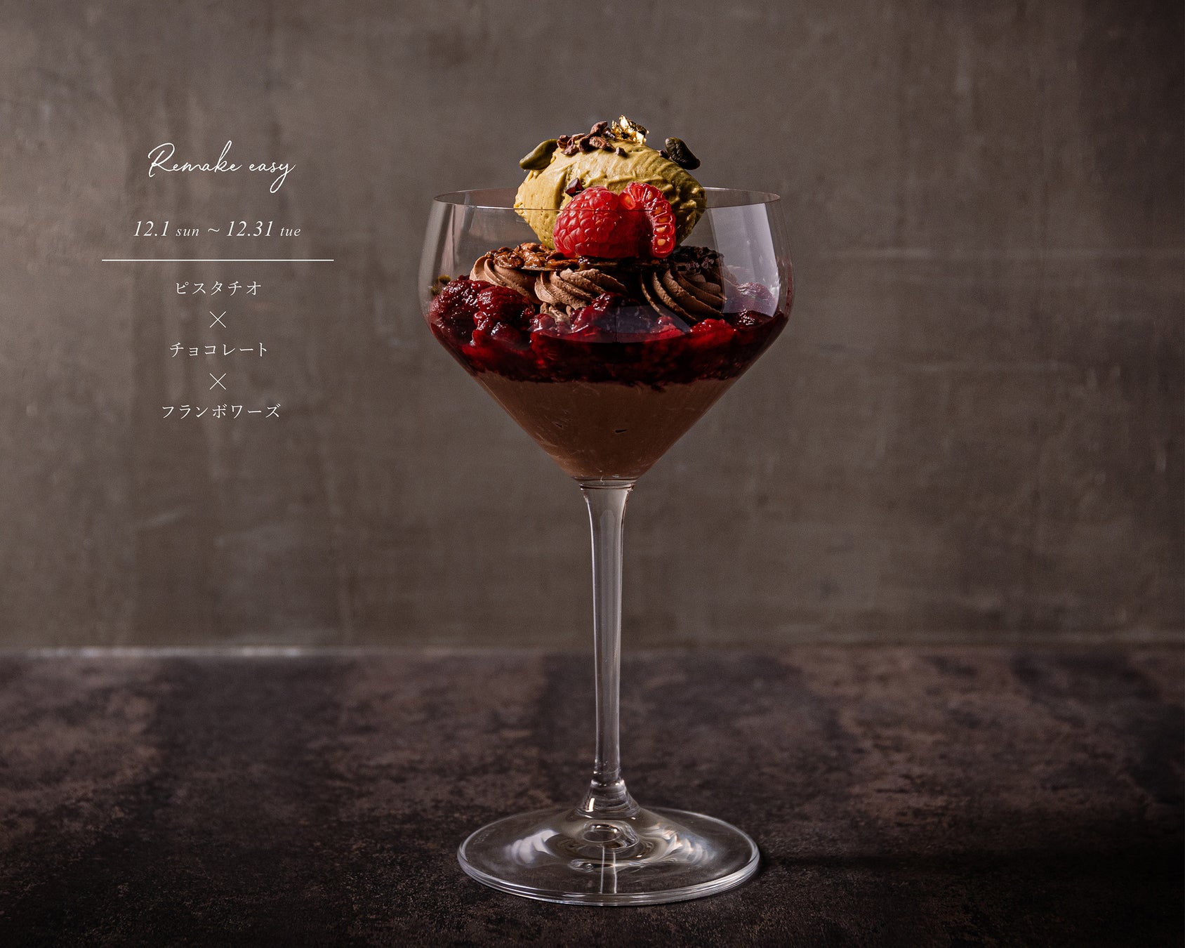 また、12月には昨年大人気だった季節パフェ「ショコラフランボワーズピスターシュパフェ」やペアリングカクテルの「ヴァンルージュ エピスチャイ」(アルコール)「スネパドゥヴァンショー」(ノンアルコール)がリバイバルで登場です。