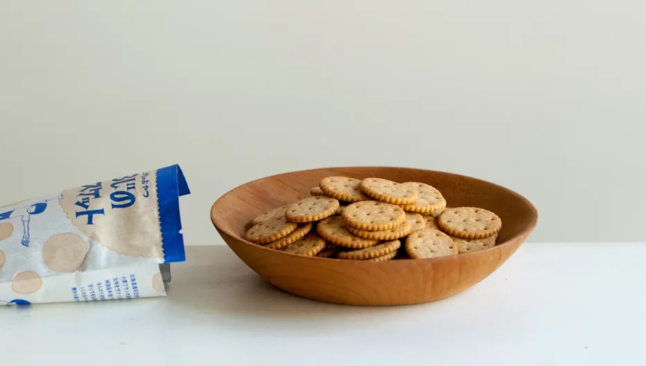 石臼挽き小麦ブランを配合した生地をオーブンで焼き上げ、米油で揚げた後にほんのり塩をまぶした小さな丸型ビスケット。小麦ブランの素朴な風味とつぶつぶ感、米油特有の甘い香り、絶妙な塩加減が特徴です。