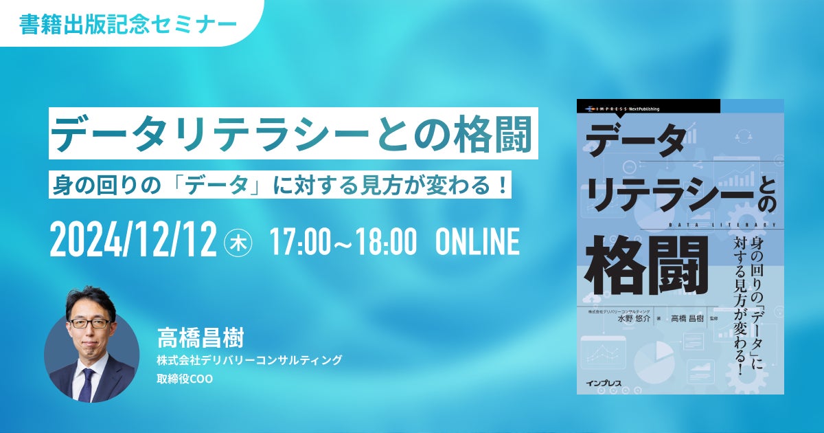 データリテラシーの向上を通じてデータドリブンカンパニーへの変革を支援する株式会社デリバリーコンサルティング(本社:東京都港区、取締役CEO:内藤 秀治郎)は、2024年11月29日に発売された書籍『データリテラシーとの格闘 ー身の回りの「データ」に対する見方が変わる!』の出版を記念して、WEBセミナーを開催いたします。