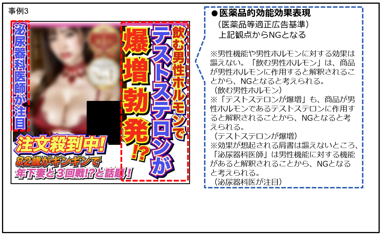 医薬品に該当する商材について、医薬品等適正広告基準に違反している表現