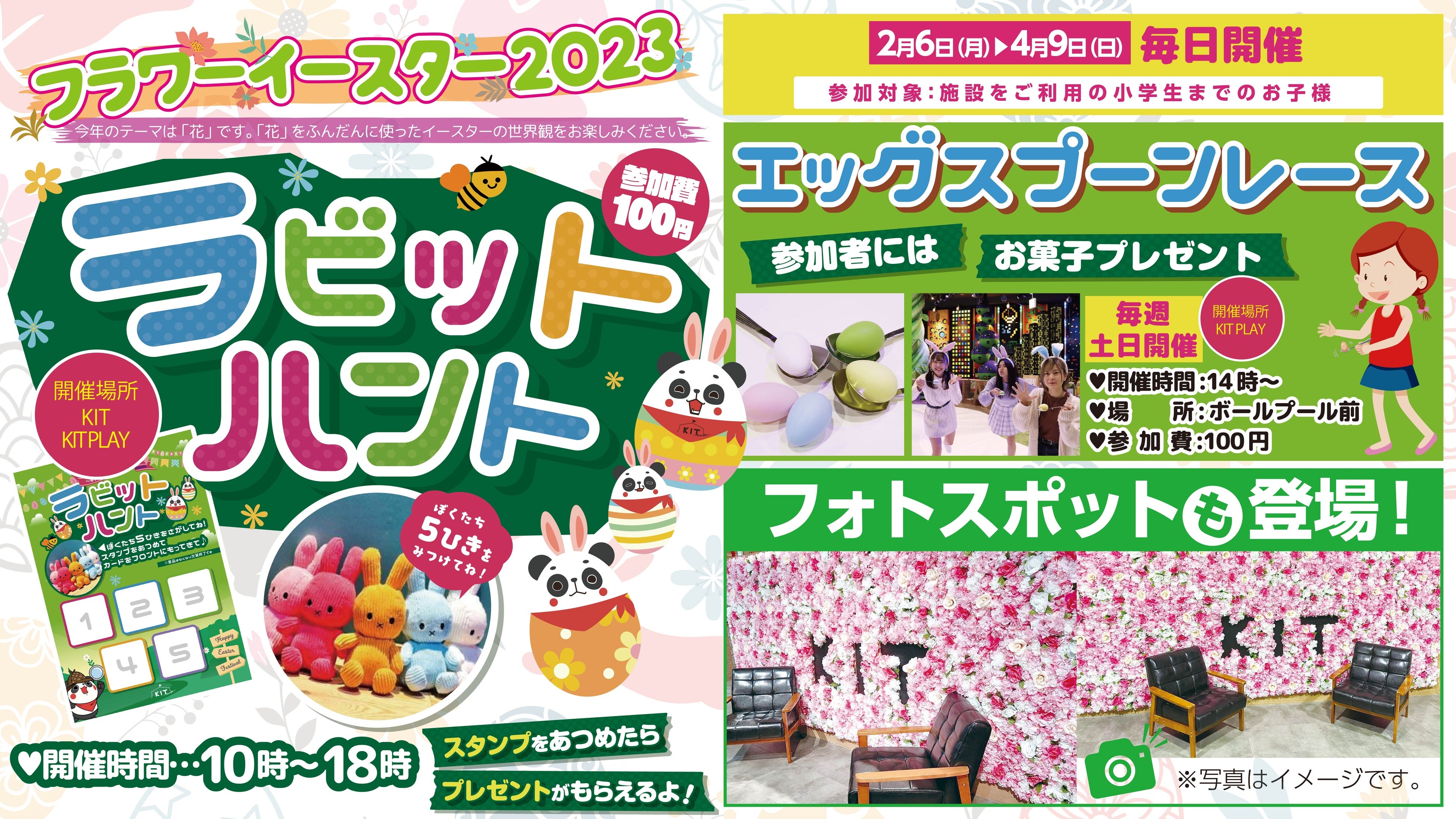 2023年2月6日(月)から、「キスケ KIT」と「KIT PLAY」では「花」をテーマにしたイベント「フラワーイースター2023」が開催されます。お子さまを対象としたイースターにちなむイベントのほか、豪華景品が当たるインスタキャンペーン「#キスケの花まつり」もスタートします。
