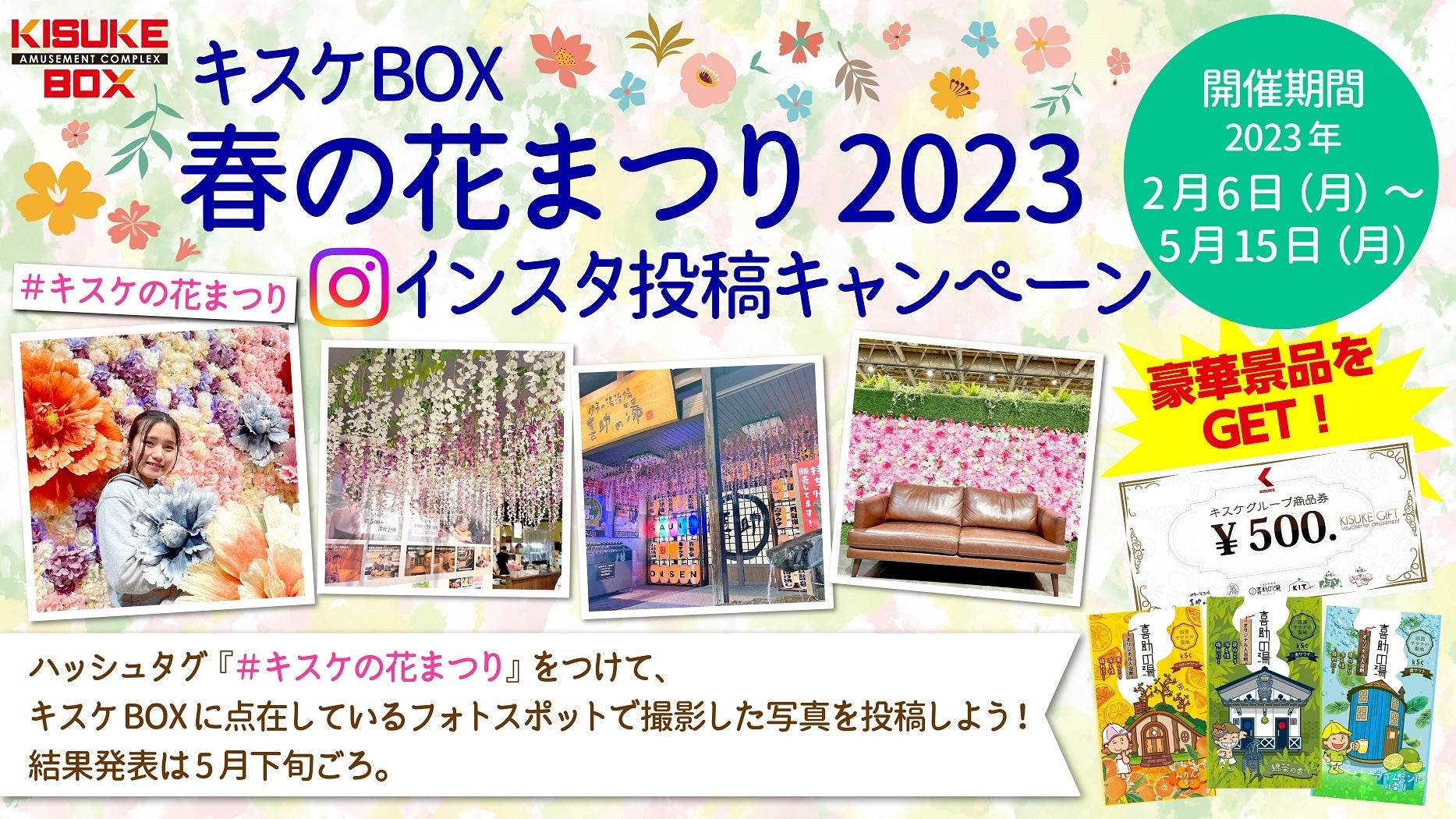 館内フォトスポットで写真を撮影してInstagramにハッシュタグ「#キスケの花まつり」をつけて投稿すると、豪華景品が抽選でゲットできます!