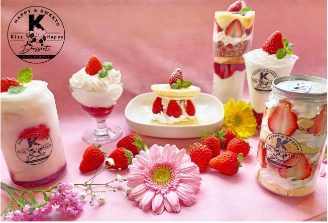 「フラワーイースター2023」の期間中には、毎年大好評の「いちごフェア」が開催中。2023年には、キスケオリジナルスイーツブランドの「Kiss Happy(キスハピ)」がプロデュースした人気のいちごスイーツを味わうことができます! ぜひご賞味ください。