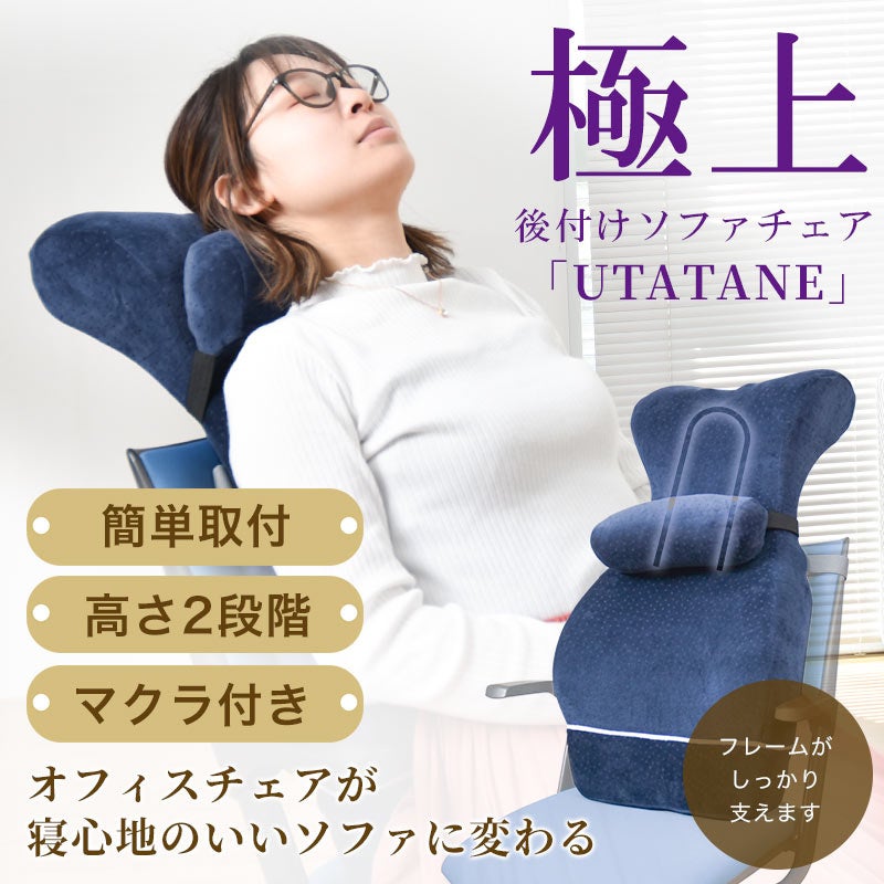 イスの背もたれが固くリラックスできない。快適なイスに変えたいが難しい。そんな方におすすめの『極上後付けソファチェア「UTATANE」』です。
