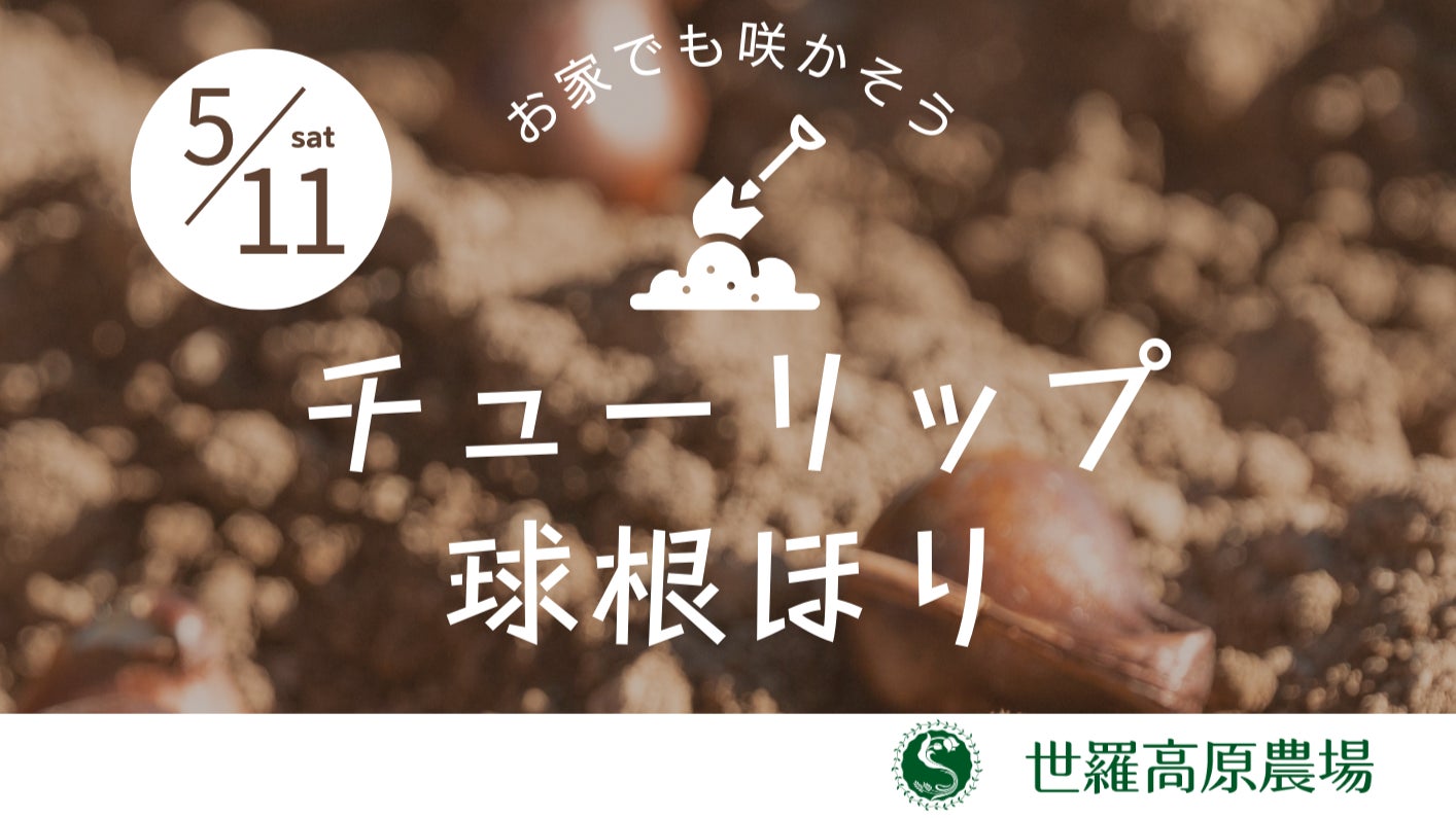 世羅高原農場で現在開催中の「チューリップ祭」は5月8日(水)で終了します。閉園後にチューリップの球根掘りイベントを開催します。園内の畑に植えられているチューリップの球根を掘り、指定の袋に好きなだけつめて持ち帰ることができます。おうちでもチューリップを育ててみませんか。