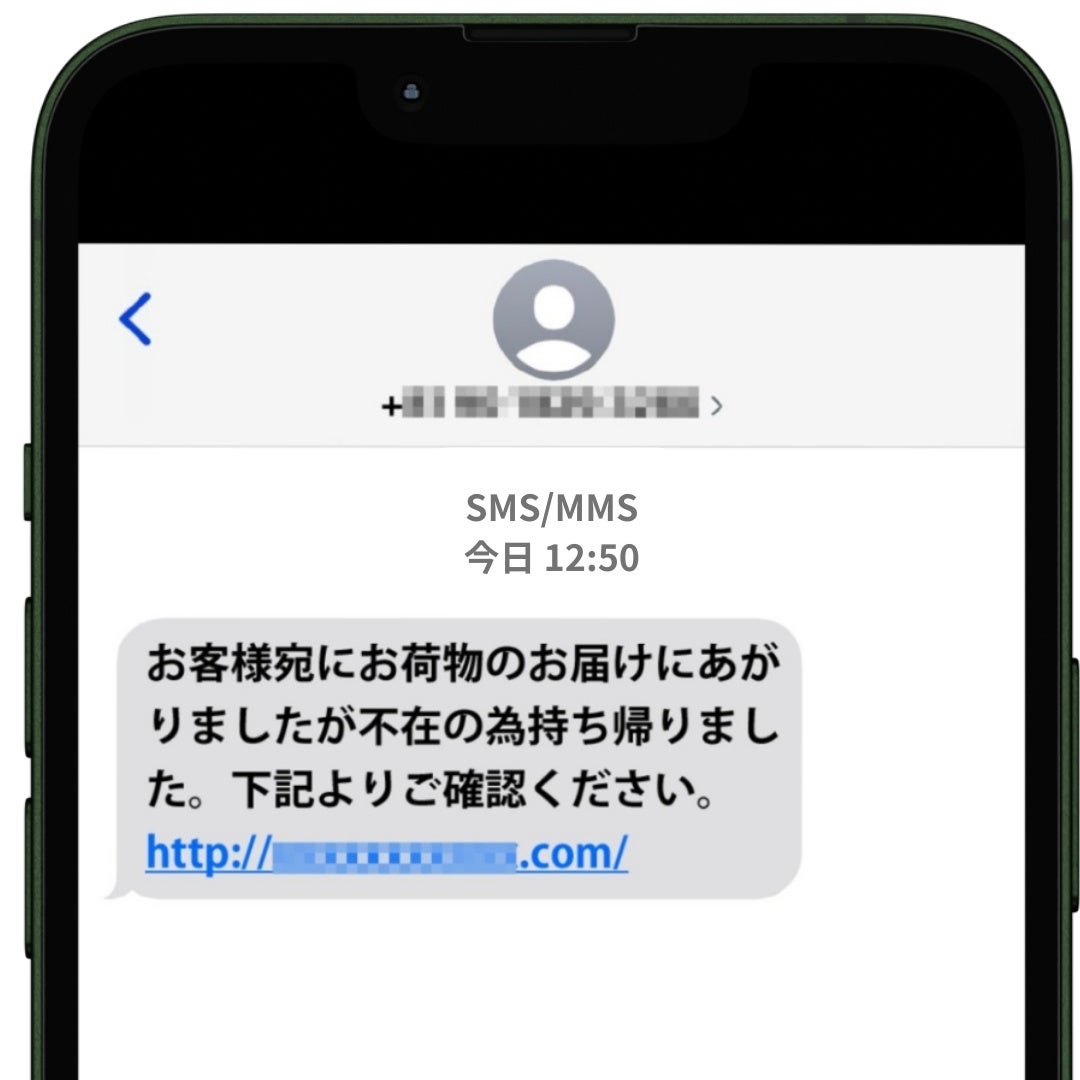 宅配業者を装った不在通知SMSを送り、偽のサイトへ誘導。アプリのダウンロードやログインID、パスワードなどの個人情報を入力させられ、個人情報を盗み取られてしまいます。