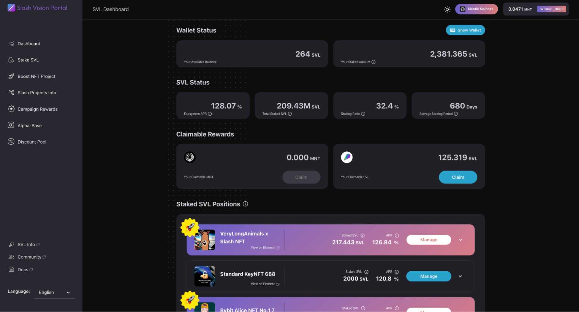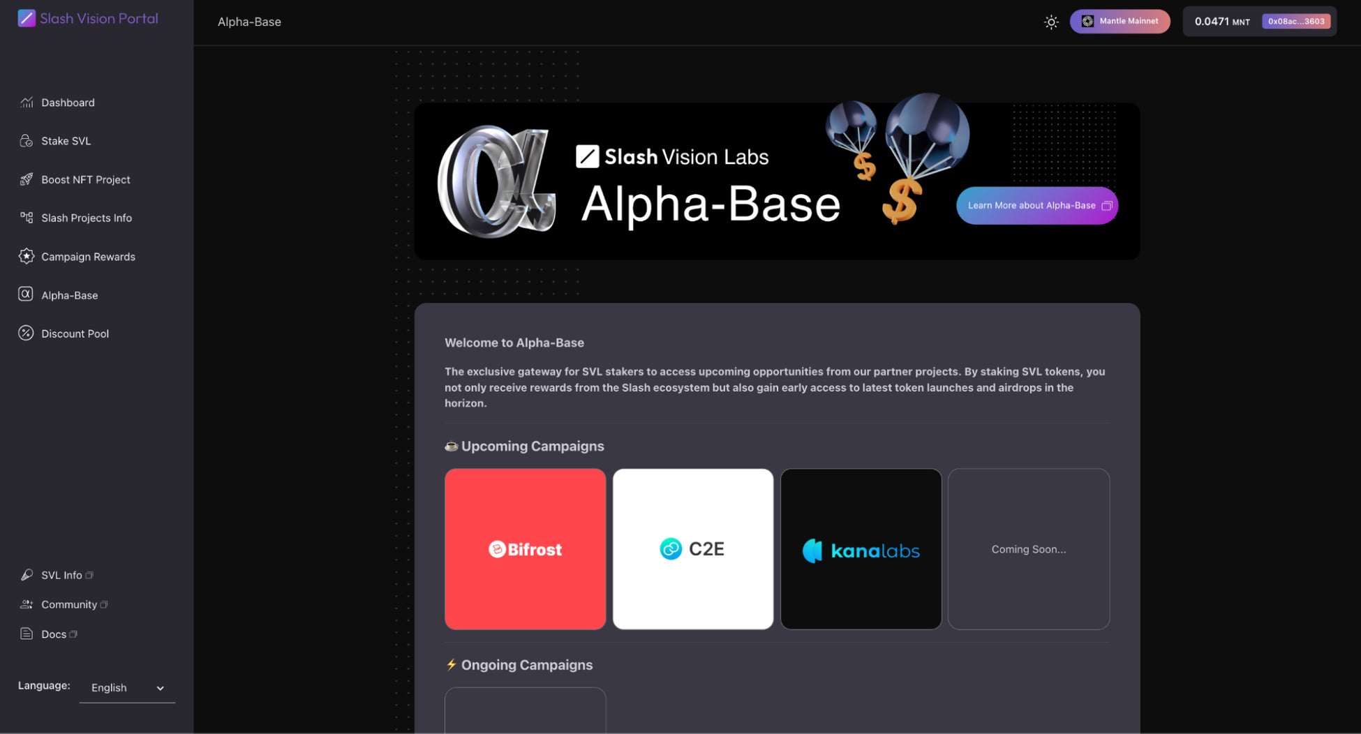 ・Alpha-Base:SVLをステーキングすることで、Slashエコシステムからの報酬を受け取るだけでなく、パートナープロジェクトの最新のトークンローンチやエアドロップへの早期アクセスも得ることができます。