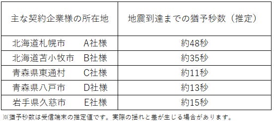 震源地に近い企業様の猶予秒数は短いですが、震源地から遠くなるにつれて猶予秒数は長くなっ