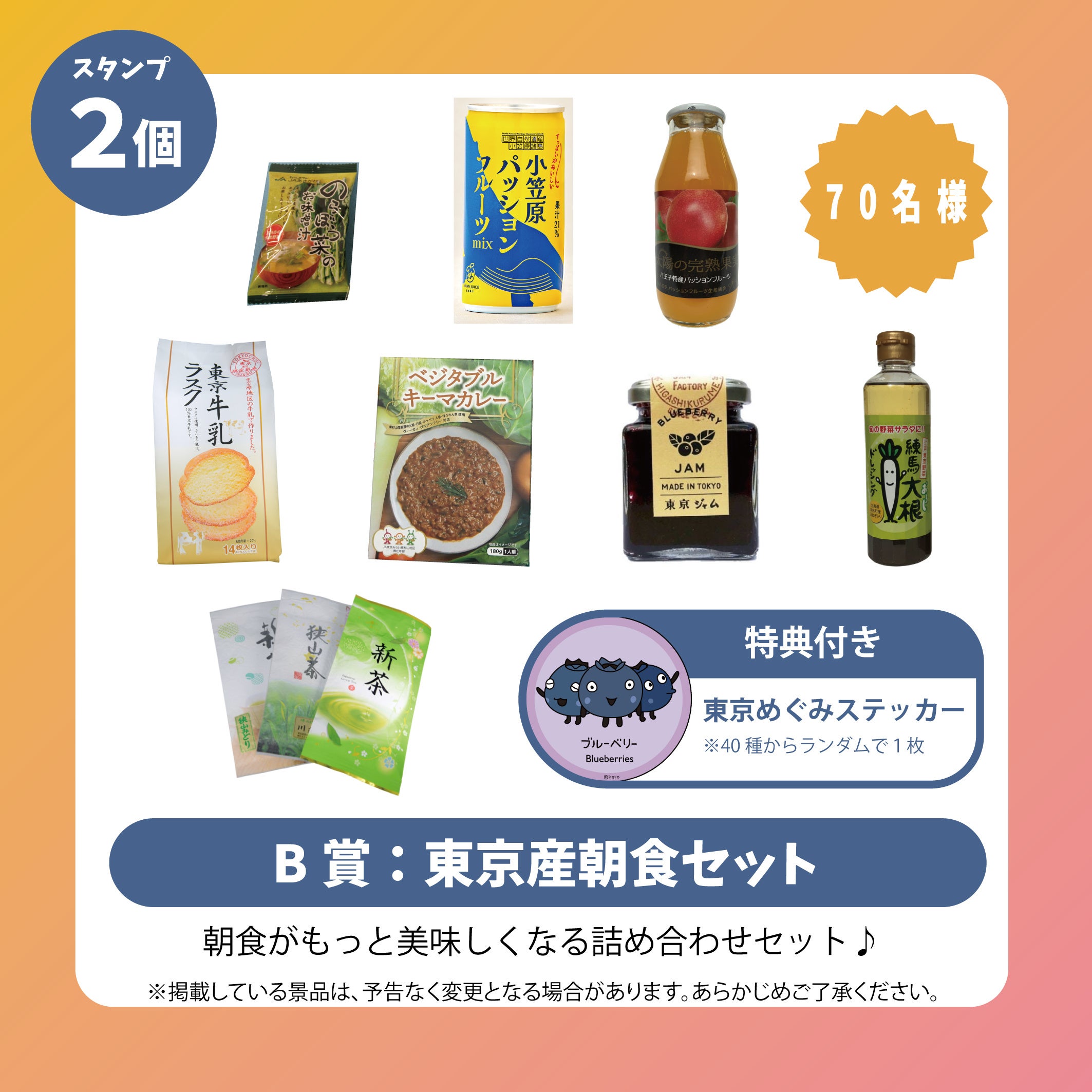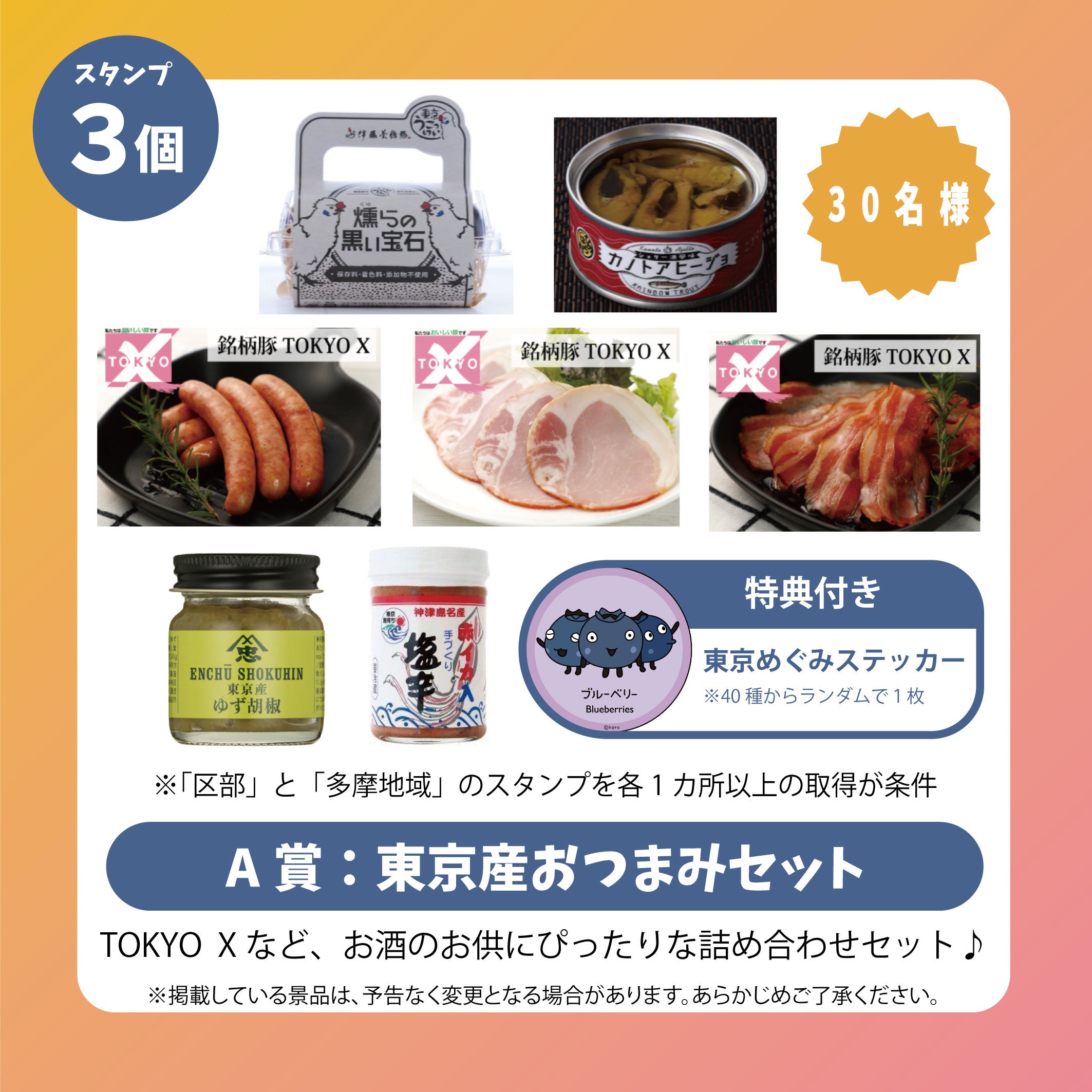 スタンプ取得数・条件に応じて、抽選で合計100名様に東京産のおいしい特産品が当たります。