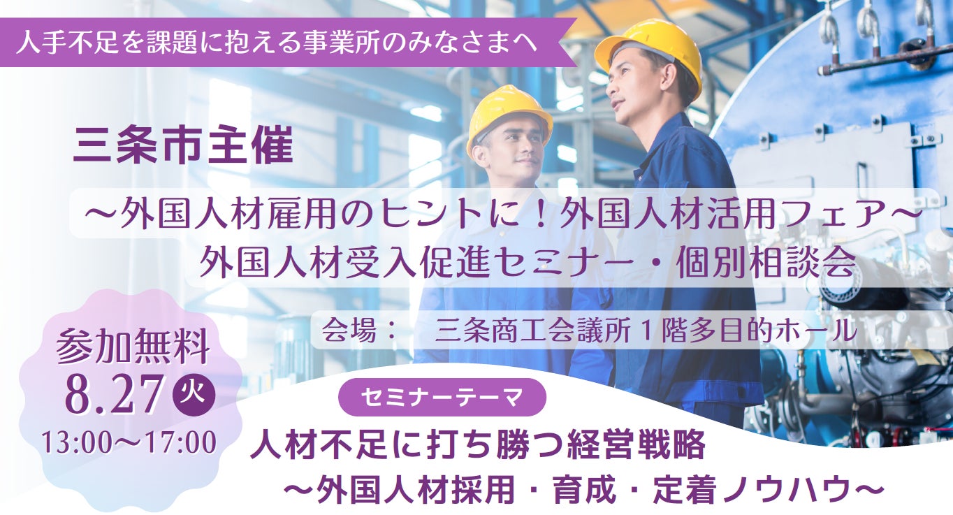 【新潟県三条市】外国人材受入促進セミナー・個別相談会を8/27(火)に開催します