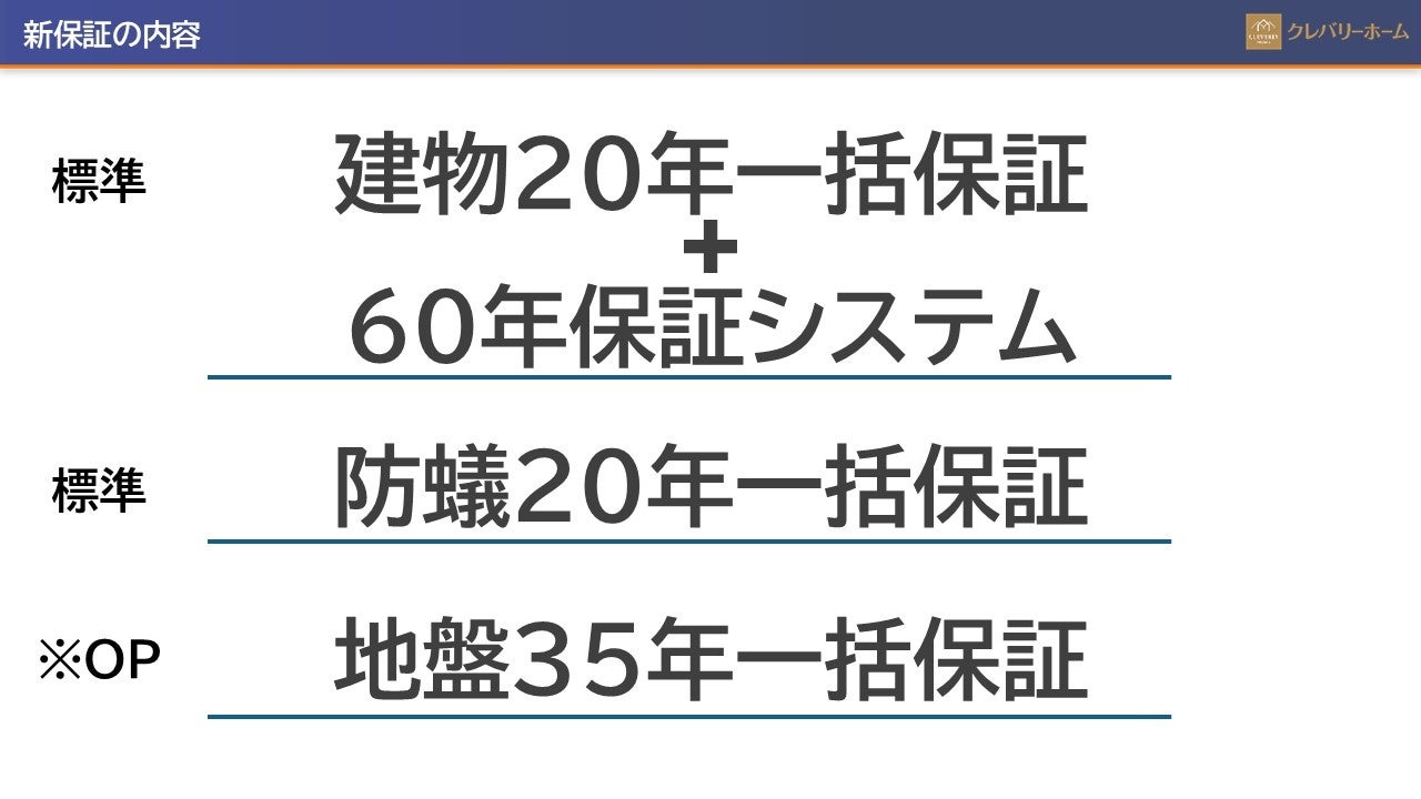 ・クレバリーホームとは別法人による保証体制のため、万が一の倒産時にも保証が継続。