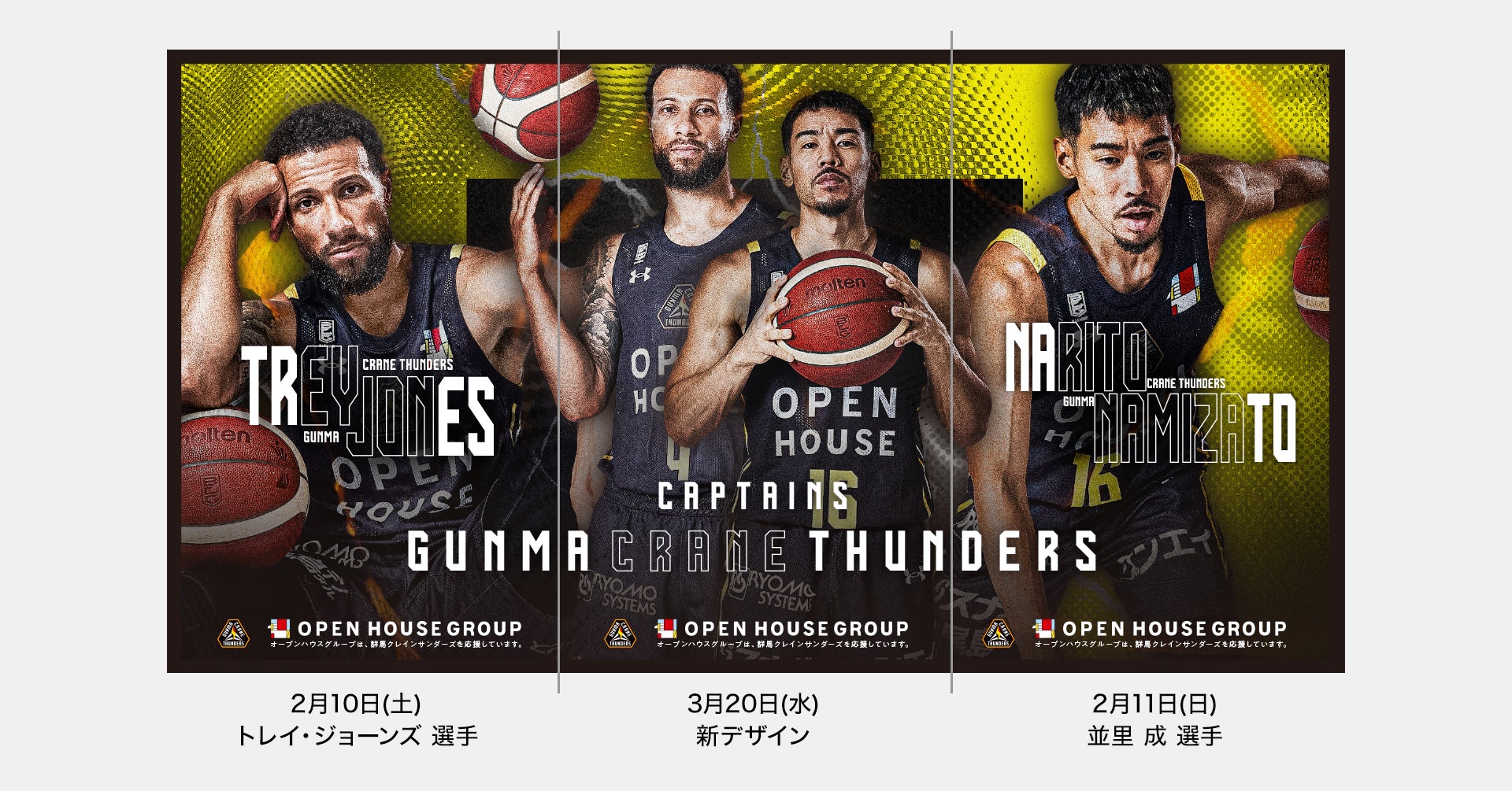 さらに、当日参加できないファンの皆様でも楽しめる参加型のSNSキャンペーン「#サンダーズ見つけた」も開催しますので、ぜひご参加ください。今後とも群馬クレインサンダーズ、太田市、オープンハウスグループが、三位一体となって、地域に根差したチーム運営を推進してまいります。