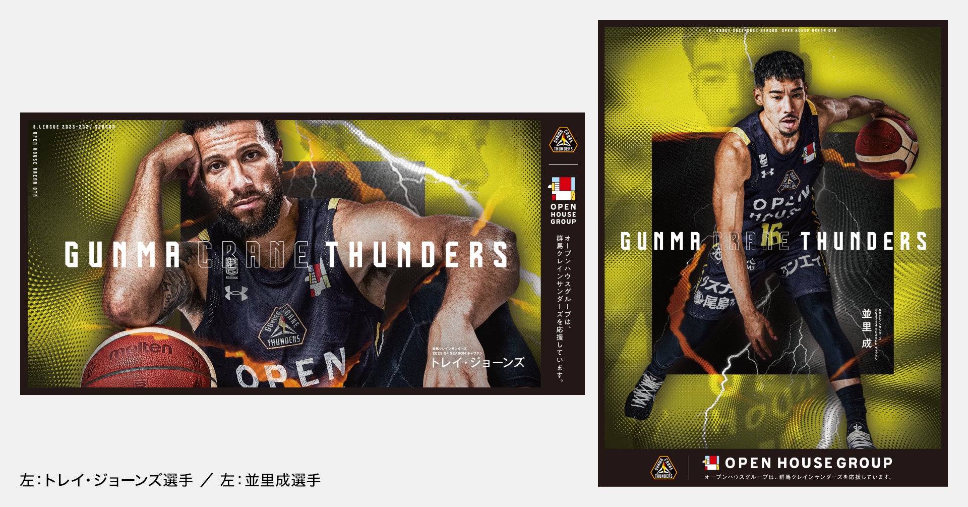 看板のデザインは、群馬クレインサンダーズが誇る2023-24シーズンWキャプテン、トレイ・ジョーンズ選手と並里成選手を起用した完全オリジナルのデザインとなっており、シーズン後半戦に向けた、強い決意と闘志を表現しています。また、このコラボレーションを記念した限定ステッカーが、オープンハウスアリーナ太田で開催予定のホームゲーム中、2月10日~11日(土・日)および3月20日(水)の3日間にわたり、各回100枚限定で配布されます。