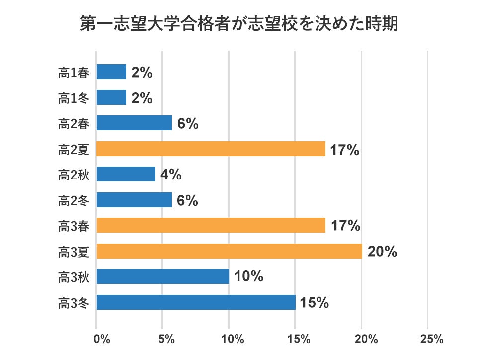 第一志望校合格者の多くは「高3夏」に志望校を決めている